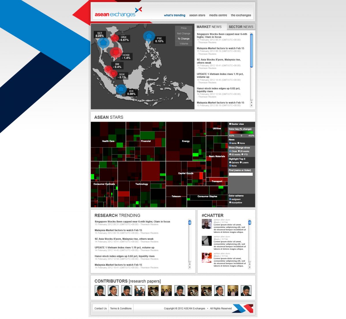 The role of this website is to visualise financial data from the 7 member exchanges around ASEAN. To do this, the site sucks in several feeds from Thompson Reuters and parses it for human consumption.