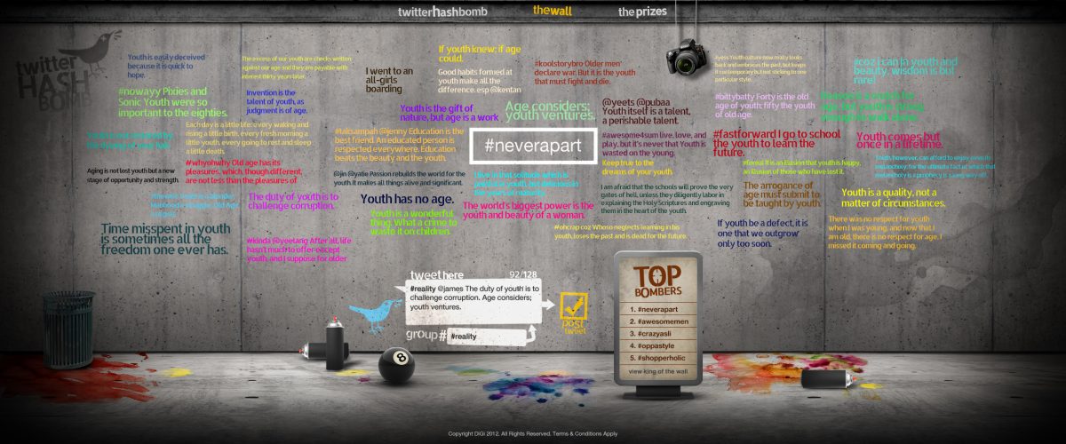 Our idea was to encourage loyal DiGi users to virtually “bomb” or graffiti their own manifestos onto a virtual wall via tweets.
